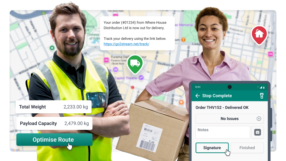 Cut route planning time, reduce missed delivery & collection windows, automate client updates and provide the real-time order visibility your customers and clients demand, all from a single system.